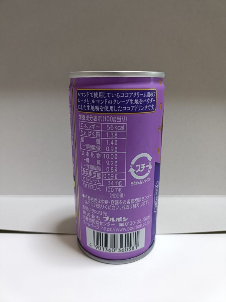 ココアドリンクって、濃厚さや甘さが魅力かなと思うんですが、このルマンドココアはそのどちらも控えめ。ミルク感も弱く、ココア感からの濃厚さもあまり感じられません。